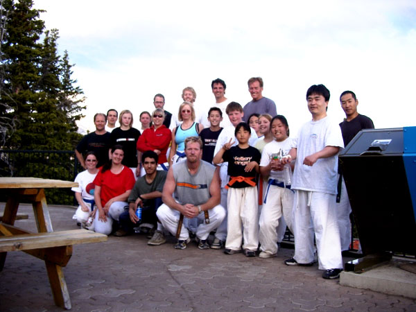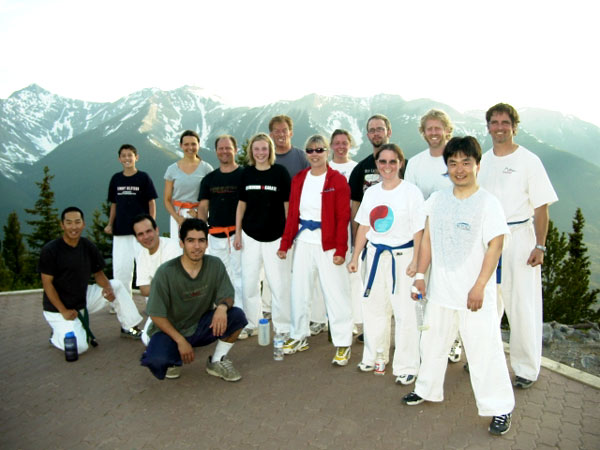 The Banff students are belt testing for two weeks and the spirit portion of the test was a timed climb to the top of Sulphur mountain. These pictures show the students at the top.