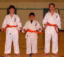 Ben, Zain, Alec receive new orange belts.