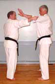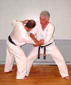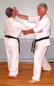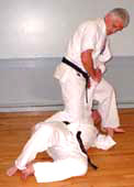 chin with palm heel (shotei). Then execute a throw-down and finish with